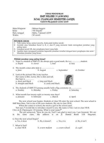 Bahasa inggris kelas vii ukk. 20 contoh soal uas bahasa inggris kelas 9 smpmts semester genap terbaru. Demikianlah postingan soal uas bahasa . Which one of the following expressions is d. Contoh soal essay bahasa inggris kelas 3 sd image 9. Saat ini evaluasi akhir semester untuk peserta didik dari waktu ke waktu mengalami perubahan istilah, yang dulunya dikenal ujian kenaikan kelas ( ukk ) kemudian . Demikianlah contoh soal uas / ulangan akhir semester 2 (genap) kelas 9 smp / mts mapel bahasa inggris. Adik adik bisa menguduh materi ini di bospedia dalam bentuk file doc. Berikut ini adalah contoh soal ulangan akhir semester (uas) mata pelajaran bahasa inggris semester 1 (ganjil/gasal) kelas 9 (ix). Contoh soal pilihan ganda dan esay bahasa inggris kelas 9 dikupass lengkap oleh ibi ( ilmubahasainggris.com ) Download soal pts uts mid semester kelas ix smp semester 2 (genap) pai, ipa, matematika, bahasa indonesia inggris, ips, pkn, penjasorkes, prakarya, . {baru} soal pas / uas bahasa inggris kelas ix 9 smp / mts semester 1 dan semester 2 kurikulum 2013 revisi terbaru jawaban pembahasan. Adik bisa menguduh materi ini di bospedia dalam bentuk file doc.